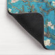 A mouse pad with the fine art painting, Blossoming Almond Tree (1890), by Vincent van Gogh. A Post-Impressionist Painter. White blossoms on branches against an aqua background.