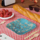 Paper plates with Vincent van Gogh's, Blossoming Almond Tree (1890). This painting was done in Saint-Remy, Southern France, also known as, Almond Branches in Bloom, from the post-Impressionist period. One of his most well-known paintings. White and pink flowers against an aqua blue sky.