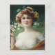 Young woman with auburn hair and green bow holding a spray of pretty flowers by Emile Vernon.