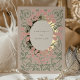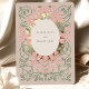 Invite your guests to witness the blossoming of your love with this Art Nouveau-inspired wedding invitation. The design blooms with a symmetrical floral pattern featuring soft pink and blush flowers intertwined with olive green vines and leaves, symbolising the intertwining of two lives. A touch of understated elegance is achieved through the use of soft beige and muted gold tones, creating a gentle and inviting atmosphere. The circular frame at the centre is a nod to unity and eternity, core themes of marriage, making this invitation not just a mere card, but a prelude to the lifelong romance about to unfold. The matte background complements the metallic sheen of the gold accents, which catch the light and promise to bring a sparkle to your guests' eyes. This invitation is perfect for couples who cherish the beauty of nature, the elegance of vintage design, and the promise of a future as enduring as the Art Nouveau movement itself.