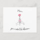 "This elegant postcard features the heartfelt message “Mum, you make my life blossom” alongside a delicate rose design—perfect for Mother’s Day, birthdays, or simply reminding her how much she means to you. Whether you tuck it into a gift, mail it across the miles, or hand it to her with a hug, this postcard is a beautiful way to share love in full bloom."