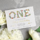 Blooming floral invitation for your little girl's first birthday features "ONE" spelled out in chic flowers, with your party details beneath in gold foil and grey lettering. Shimmering gold foil accents on the flowers add a delightful touch to this charming nature inspired design.