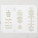 Fold this Fall wedding program template in thirds after purchase. A leaf design covers the back of this white paper. Brown and dark green template text is easy to change and customise for your ceremony. It will open like an accordion with all printing - images and text - on ONE SIDE ONLY and must be folded after purchase.