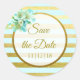 Personalised Wedding Date, Save the Date, blue and gold wedding stickers.