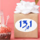Blue 13.1 half-marathon with running dot symbol.