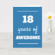 Fun blue 18 years of awesome card for this 18th birthday, which you can easily personalise the inside card message if wanted.