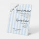 Two Signature Drinks Mocktail or Cocktail Bar Sign - Let your guests know what are your signature drinks with this simple and elegant 2 signature drinks bar pedestal sign. Whether offering cocktails, mocktails or both. Perfect for baby showers, bridal showers, weddings, birthday parties and more. The design features a retro, vintage aesthetic with a striped light blue and white background. All text editable.