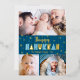 Blue 3 Photo Happy Hanukkah Fun Modern Real Gold