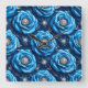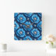 Blue 3d roses pattern square wall clock