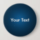 A blue omni effect on a pin back button with a text template for your personalisation.