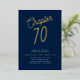 Celebrate a special 70th milestone in style with our beautiful Blue 70th Birthday Gold Script Chapter 70 Party Foil Invitation. Perfect for family and friends, this chic and elegant invitation captures the sophistication of the event with a luxurious blue and gold script design. Invite your loved ones to your special celebration and make it one to remember with this luxury birthday invitation.