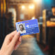 Hospital or nursing home employee badge with an abstract background in hues of blue. Add a photo of the employee along with name and profession. Personalise further with your business logo.