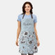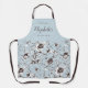 Custom kitchen apron feature abstract floral pattern in turquoise blue and brown with personalised name and text. Great personalised kitchen apron for women.