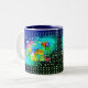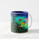 Blue Abstract Geometric Stars Bright Green Two-Tone Coffee Mug