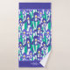 Blue Abstract Iris Floral Pattern Monogram Bath Towel Set