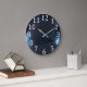 This wall clock features my painting of light bright sapphire blue, in abstract shapes and patterns, on a dark blue black background. The clock face features large white numbers. Purchase at CherylsArt on Zazzle.