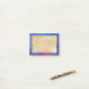 An abstract design composed of blues and other muted colours in subtle faded pixels squares and box shapes. A pink bordered, faded abstract, multicolored overlay in the centre for writing on.
