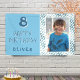 Blue Abstract Wave Boy Photo Happy Birthday Banner. The design has blue and white waves, blue background, fun text happy birthday and name. Add your photo and your name. Great for a boy`s birthday party.