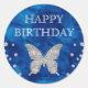 Blue Acrylic & Silver Glitter Butterfly Birthday Classic Round Sticker