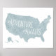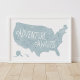 This hand-lettered watercolor "Adventure Awaits" US map is perfect for little explorers and big explorers alike! The map is a great finishing touch for adventure, outdoors, or travel themed rooms.