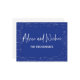 Modern blue graduation advice and wishes for the graduate card with a beautiful calligraphy script font and a background of mathematical formulas and equations. Let the guests write and sign their words of wisdom at the back of the card and make the graduation party memorable forever. Illustrated and designed by Patricia Alvarez.
