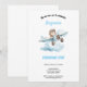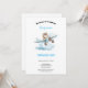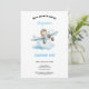 This cool and modern boys travel birthday invitation design features an aeroplane illustration, with a blue sky and clouds, and can be personalised with all the information you need for your child’s birthday party. The perfect whimsical blue aeroplane-themed invitations for a 5th birthday, but customisable for any age.