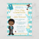 Cute African American boy blue holy first communion design with blue striped background and gold foil confetti. Graphics by Mujka and KlouiseDigiArt on Etsy.