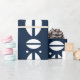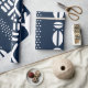 Dark blue unique, beautiful African inspired bogolan mud cloth pattern decorated gift wrap. Wrap a gift for your favourite person with this one of a kind personalised African motif style wrapping paper.