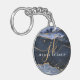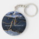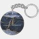 Blue Agate Geode Gold Glitter Script Monogram Key Ring