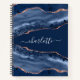 A dark blue and rose gold agate, marble stone print as background Personalise and add your name. The name is written with a modern hand lettered style script.