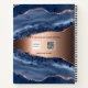 A dark blue and rose gold agate, marble stone print as background Personalise and add your name. The name is written with a modern hand lettered style script.