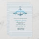 Horizontal stripes and a blue anchor with a banner, create a lovely invitation for a baby boy shower or child's birthday party invitation.