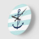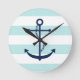 Preppy and chic nautical design features a beautiful anchor shape on a background of horizontal nautical stripes.