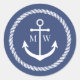 Blue Anchor & Rope Monogram Classic Round Sticker
