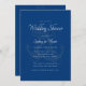 Dark blue, nautical themed wedding shower invitations for the couple. Two anchors design with white and light grey text. Corner notches are one choice, and speciality paper is also available.