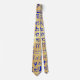This custom dress tie features an ancient Egyptian art theme. A series of blue Egyptian hieroglyphics are printed across a gold background.