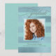 A distinctive graduation announcement with lovely elegant style, this design features a faux foil striped pattern in shimmering blue and aqua. Beautiful script flourishes accent the design with the word "graduate". Replace the sample photo by uploading your own desired photo using the easy-to-use template. Personalise the text with your graduate's name, school and graduating class year. This design works well for a high school, college, prep school, nursing school, med school, law school, business school and other types of graduations.