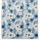 On a light blue background, there is a lovely pattern of dark blue and beige flowers with gold berries.