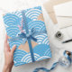This stylish wrapping paper features a classic Japanese-inspired wave pattern in soothing blue and beige tones. Perfect for adding a touch of elegance to your gift packaging.