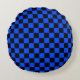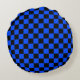 A blue and black checkerboard pattern fills the image, creating a uniform, alternating grid of squares, conveying a bold and geometric feel.
