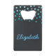 This lovely credit card bottle opener absolutely amazing. Displaying a black background with blue confetti design. Customise your name.