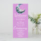 The back of the program showcases a thoughtful list of the cherished members of your wedding party, acknowledging their important roles in your celebration. Inside, the text is tastefully presented in classic black and grey, utilising a simple block font for clarity and readability. However, the words "Welcome," "Ceremony," and "Wedding Party" are elegantly rendered in a decorative script font. This graceful script adds a touch of sophistication and charm, enhancing the overall enchanting ambiance of the design.