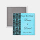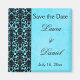 This blue and black damask save the date magnet matches the wedding invitation and other items shown below. If you require any changes or need additional matching items, please email niteowlstudio@gmail.com.