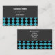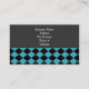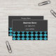 A cool design on a charcoal gray background. A border of diamonds in blue and black accent it. This border is on the back of card as well. Customize with all of your business information as desired.