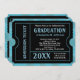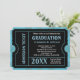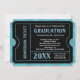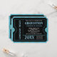 Ticket Invitations, blue and black background, with bright almost teal blue and white text.. Great to use for any graduation party year. Boy, teen or men's masculine or unisex graduation or party/reception invitations. Customise with your party info. Makes a great, unique invite. Styled to resemble a real admission ticket with faux cutouts and faux perforated sides, this bold and fun invite is great for a high school or college grad party!