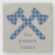 Perfect for your family, this personalised design features a grayish blue background with a black and grey plaid crossed axe. A great housewarming present, place your order today!