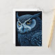 Ai art depicting a serious looking majestic serene blue and black owl with the night sky background.