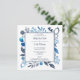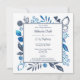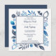 Blue and Blue Grey Leaves Flowers Border Wedding Invitation