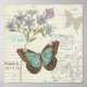 © Pela Studio / Wild Apple. A blue and brown butterfly with a purple flower. There is a butterfly silhouette in the background as well as French words.