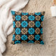 Blue and brown floral pattern on black background throw pillow